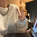 Best 2021 New White Sweater Women's Thin Spring and Autumn Long Sleeved Jacket, Korean Students' Loose Upper Clothes and You will save 30% or US $17.5 today